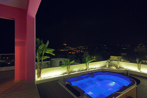 This air-conditioned Luxury Suite with private large balcony and large swimming pool - Jacuzzi, has lovely sea view,has a satellite flat-screen TV , bathrobes, hairdryer , Safe and free Wi-Fi.